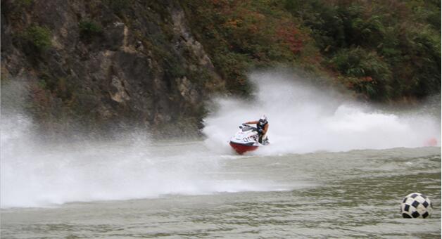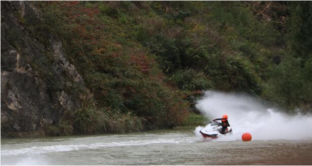 | 水上摩托在美丽的秦岭中驰骋,宁静的小城承载着大大的未来。这就是对第六届中国摩托艇联赛(简称CPL)陕西山阳站暨中国水上摩托精英赛的感觉。