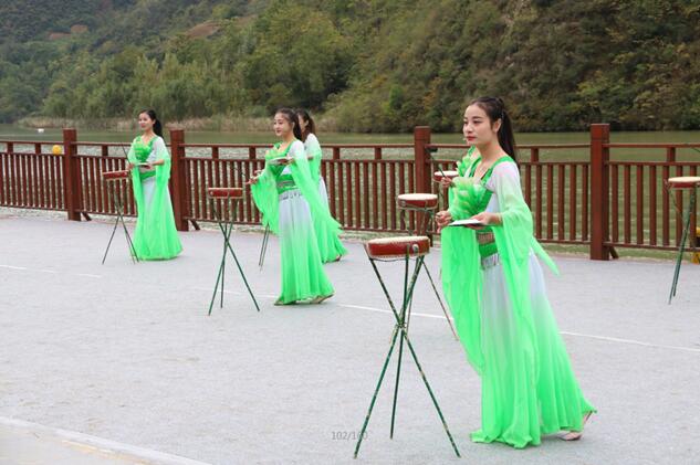 我们下车以后,赛场内外已经是人山人海了,这对于一座只有十万人的县城来说,似乎有些过载;进入赛场后,观众区座无虚席,舞台上已经开始了演出。其中印象最为深刻的则是小家碧玉的姑娘们一边敲打着小巧的鼓一边唱歌的情形,虽然不比江南的呢喃,但却多了几分大山里的含蓄。